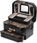 Duży elegancki kuferek etui na biżuterię Monnari kosmetyczka szkatułka organizer – czarny