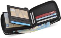 Stylowy portfel męski wykonany z wysokiej jakości skóry naturalnej to połączenie elegancji, trwałości i funkcjonalności, które sprawdzi się zarówno na co dzień, jak i na specjalne okazje. Staranne wykonanie oraz ponadczasowy design podkreślają męski charakter, a przemyślany układ przegródek zapewnia wygodne przechowywanie kart, dokumentów i gotówki, dzięki czemu wszystko masz zawsze pod ręką. Kompaktowy, a jednocześnie pojemny, idealnie mieści się w kieszeni, nie tracąc przy tym na praktyczności. Solidna skóra gwarantuje odporność na codzienne użytkowanie i długą żywotność produktu, co czyni go doskonałym wyborem dla mężczyzn ceniących jakość i styl, a także świetnym pomysłem na elegancki prezent.