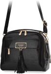 Torba damska z delikatnym wzorem. Torba dwukomorowa, z jasnymi, logowanymi podszewkami oraz dodatkowymi kieszonkami na drobiazgi. Torbę zdobią z przodu frędzle, które nadają jej lekkości i stylowego charakteru. Zawieszona na rączce, a w zestawie znajduje się regulowany pasek. Torbę należy przechowywać w załączonym woreczku.