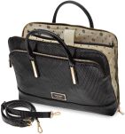 Torba damska na laptopa, zawieszona na wygodnych rączkach. Jednokomorowy model z jasną, logowaną podszewką został wyposażony w dodatkowe kieszonki na drobiazgi oraz wydzielone miejsce na laptopa. W zestawie znajduje się również regulowany pasek, który umożliwia noszenie torby na ramieniu.