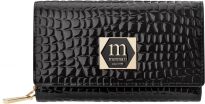 Monnari lakierowany portfel damski skórzany elegancka portmonetka ze wzorem - czarny