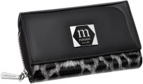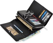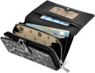 Portfel damski z naturalnej skóry. Wnętrze zostało starannie zaprojektowane, oferując liczne przegródki na karty, przestronne kieszenie na banknoty oraz praktyczną przegrodę zapinaną na suwak, idealną do przechowywania monet. Dodatkowo, portfel ma miejsce na zdjęcie.