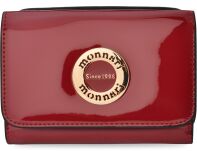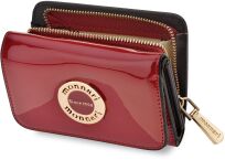 Wzorzysty mały portfel, zamykany na napę. Portfel oferuje miejsca na karty, banknoty oraz jedno miejsce na zdjęcie. Dodatkowo, z tyłu znajduje się kieszonka zapinana na suwak, idealna do przechowywania monet.