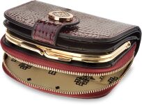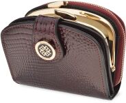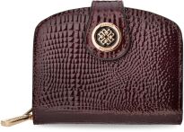 Monnari mały skórzany lakierowany portfel damski trójelementowa portmonetka - burgundowy