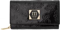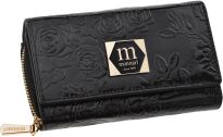 Monnari portfel damski skórzany na prezent elegancka portmonetka w kwiaty - czarny