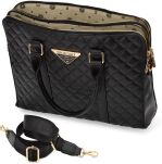 Pikowana torba damska, idealna do pracy i na co dzień. Dwukomorowy model z jasną, logowaną podszewką. W środku znajduje się również specjalne miejsce na laptopa. Torba zawieszona jest na rączkach, a w zestawie znajduje się dodatkowy pasek do noszenia na ramieniu. Torbę należy przechowywać w dołączonym woreczku.