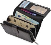 Portfel damski z klapą zapinaną na napę. Wnętrze portfela oferuje liczne przegródki oraz miejsca na karty i banknoty, a także kieszonkę zapinaną na suwak. Dodatkowym atutem jest miejsce na zdjęcie.