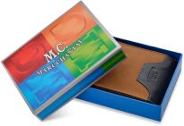 Portfel posiada klasyczną formę, matowe wykończenie i zdobienia w formie kolorowych dodatków. Portfel dla mężczyzn lubiących klasykę w nowoczesnym stylu. Wykonany w całości ze skóry naturalnej.