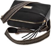 Stylowa torba damska z praktyczną kieszonką z przodu, idealna na co dzień. Wewnątrz znajduje się jedna przestronna komora, wykończona jasną, logowaną podszewką, z dodatkowymi kieszonkami na drobne akcesoria. Torba zawieszona jest na wygodnym, szerokim pasku, który można regulować, zapewniając komfort noszenia.