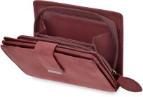 Elegancki portfel damski wykonany z wysokiej jakości skóry naturalnej to idealne połączenie stylu, funkcjonalności i trwałości, stworzone z myślą o kobietach ceniących wygodę oraz ponadczasowy design. Kompaktowy rozmiar sprawia, że portfel bez problemu mieści się w torebce, plecaku czy nawet kieszeni, a jednocześnie oferuje praktyczne wnętrze z przegródkami na karty płatnicze, dokumenty, banknoty oraz kieszonką na bilon zamykaną na zatrzask, co zapewnia wygodną organizację i szybki dostęp do zawartości. Intensywny czerwony kolor podkreśla kobiecy charakter dodatku i sprawia, że portfel wyróżnia się wśród klasycznych modeli, będąc zarówno funkcjonalnym akcesorium na co dzień, jak i stylowym uzupełnieniem eleganckiej stylizacji. To również doskonały pomysł na praktyczny i uniwersalny prezent.