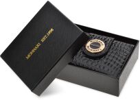 Elegancki zgrabny damski portfel. Wyposażony w kieszonkę na monety zapinaną na suwak, podzieloną na dwie oddzielne komory. Dodatkowa część portfela, zamykana klapką na napę zdobioną logo marki, skrywa miejsce na banknoty, karty oraz przezroczystą kieszonkę na zdjęcie.