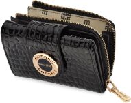 Monnari lakierowany portfel damski mały portfelik portmonetka na zamek - czarny