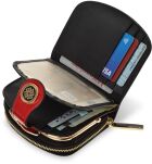 Portfel o zaokrąglonych brzegach z wieloma przegródkami na banknoty oraz karty. Dodatkowym atutem jest miejsce na zdjęcie. Z tyłu zapinana na suwak kieszonka na monety. Portfel ten będzie stylowym dodatkiem w każdej kobiecej torebce.