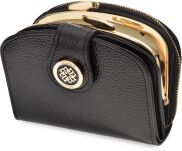Monnari mały skórzany portfel damski trójelementowa portmonetka - czarny