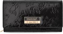 Monnari portfel damski ze wzorem duży pakowny portmonetka w kwiaty - czarny