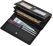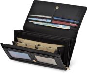 Portfel damski ze wzorem. Wnętrze zostało starannie zaprojektowane – znajdziesz w nim liczne przegródki na karty, przestronne kieszenie na banknoty oraz praktyczną przegrodę zapinaną na suwak, idealną do przechowywania monet. Dodatkowym atutem są dwa okienka na zdjęcia. Portfel zamykany jest na klapę z wygodnym zatrzaskiem.