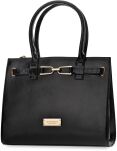 Elegancka torba damska, zawieszona na klasycznych rączkach. Trzykomorowy układ zapewnia wygodną organizację: środkowa komora zapinana na suwak oddziela dwie pozostałe, zamykane na napy. Wnętrza wykończone jasnymi, logowanymi podszewkami. Praktyczna, pojemna i stylowa, sprawdzi się zarówno w pracy, jak i na co dzień. Torbę należy przechowywać w dołączonym woreczku.