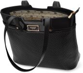 Shopper damski z efektownym zdobieniem na przednim panelu. Jednokomorowy model z jasną, logowaną podszewką oraz praktycznymi kieszonkami na drobiazgi. Torba zawieszona na rączkach, zapinana od góry na suwak – idealna na co dzień. Torbę należy przechowywać w dołączonym woreczku.