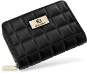 Mały portfel damski pikowany Rovicky portfelik na prezent portmonetka ze skóry ekologicznej - czarny