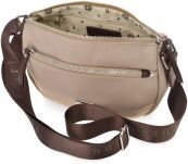 Torba crossbody. Model jednokomorowy, z jasną, logowaną podszewką oraz dodatkowymi kieszonkami wewnątrz i dwiema kieszeniami zewnętrznymi. Zawieszona na regulowanym pasku, jest idealna na co dzień – praktyczna, stylowa i wygodna w noszeniu. Torbę należy przechowywać w dołączonym woreczku