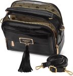 Torba damska z delikatnym wzorem. Torba dwukomorowa, z jasnymi, logowanymi podszewkami oraz dodatkowymi kieszonkami na drobiazgi. Torbę zdobią z przodu frędzle, które nadają jej lekkości i stylowego charakteru. Zawieszona na rączce, a w zestawie znajduje się regulowany pasek. Torbę należy przechowywać w załączonym woreczku.